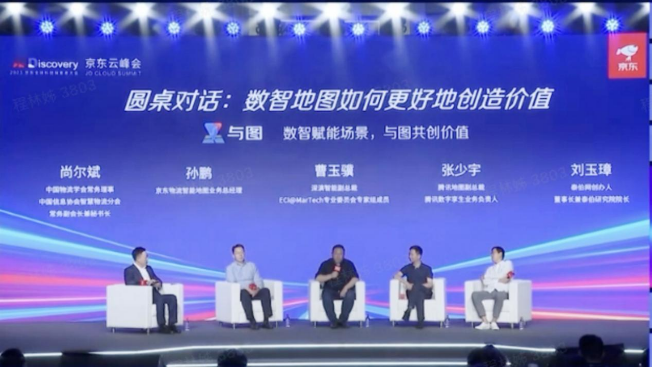 在“数智化时代地图应用如何更好地赋能场景创造价值”的主题圆桌论坛上,中国物流学会常务理事尚尔斌、京东物流智能地图业务负责人孙鹏、创世红海智能副总裁曹玉骥、腾讯地图副总裁张少宇以及与会的业界专家、学者围绕数智地图如何更好地创造价值,进行了深入交流和探讨。